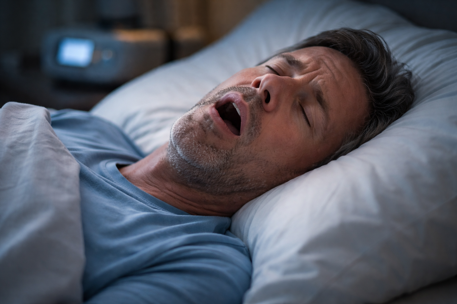 A apneia do sono é uma condição em que a respiração para ou diminui repetidamente durante o sono. Esses episódios são chamados de apneias, quando há interrupção completa da respiração, ou hipopneias, quando ocorre uma redução importante do fluxo respiratório. Cada evento pode durar vários segundos e se repetir muitas vezes ao longo da noite.