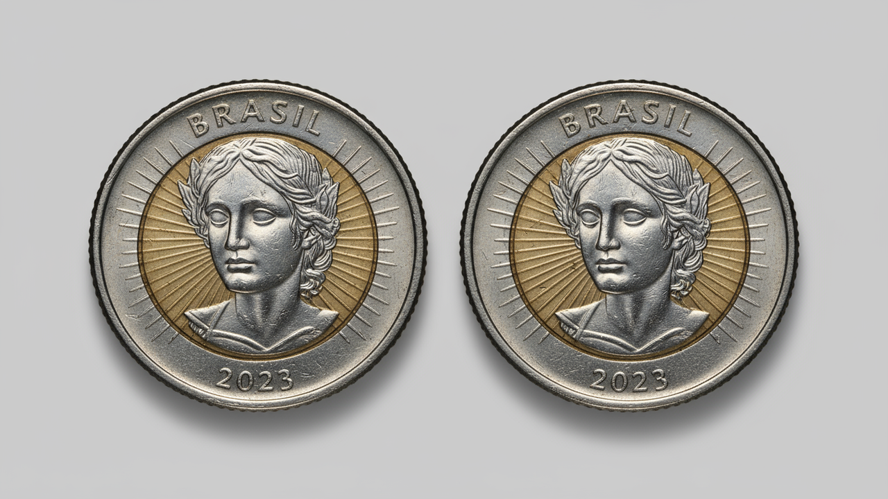 Uma moeda de 1 real comum pode se tornar uma fortuna nas mãos certas. Colecionadores disputam peças raras com defeitos de cunhagem e conservação impecável.